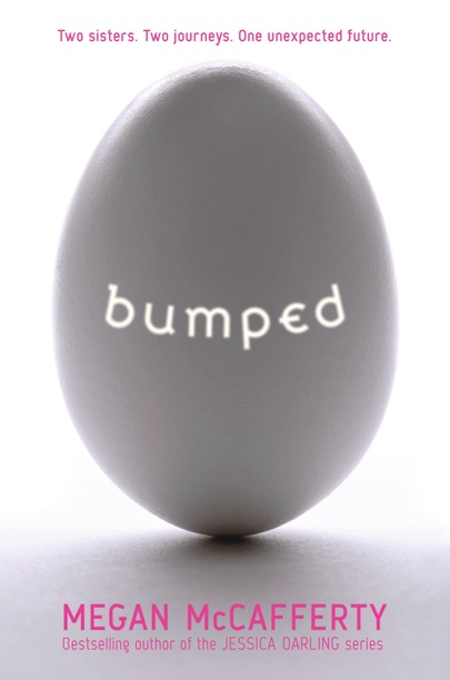 I just grabbed the book Bumped by Megan McCafferty. This is a futuristic story where a virus makes everyone over the age of eighteen infertile, thus people wanting to have babies would pay teen girls to conceive and birth for them. This story is about sixteen year-old identical twins who were separated at birth and who have very different views on the conception for profit path.